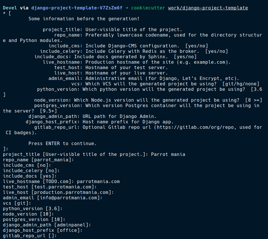 Now all that's left is to run cookiecutter